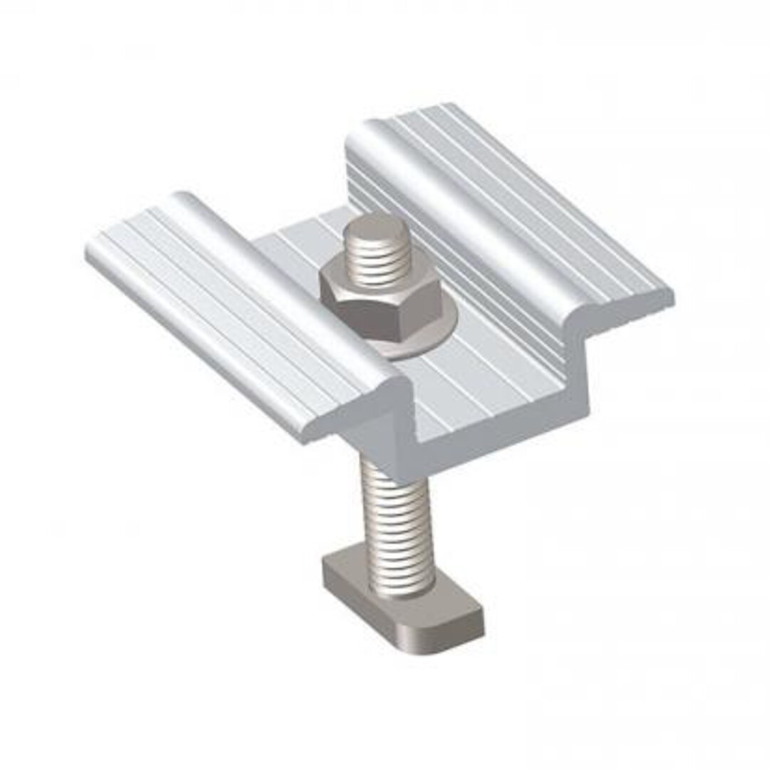 Diferente do grampo final (que prende a borda externa da última placa), o intermediário é posicionado entre dois módulos, garantindo o espaçamento correto para a dilatação térmica e a segurança contra ventos fortes. Ele é projetado para encaixar-se em perfis de alumínio específicos e costuma ser fabricado em alumínio anodizado com parafusos em aço inox para evitar corrosão